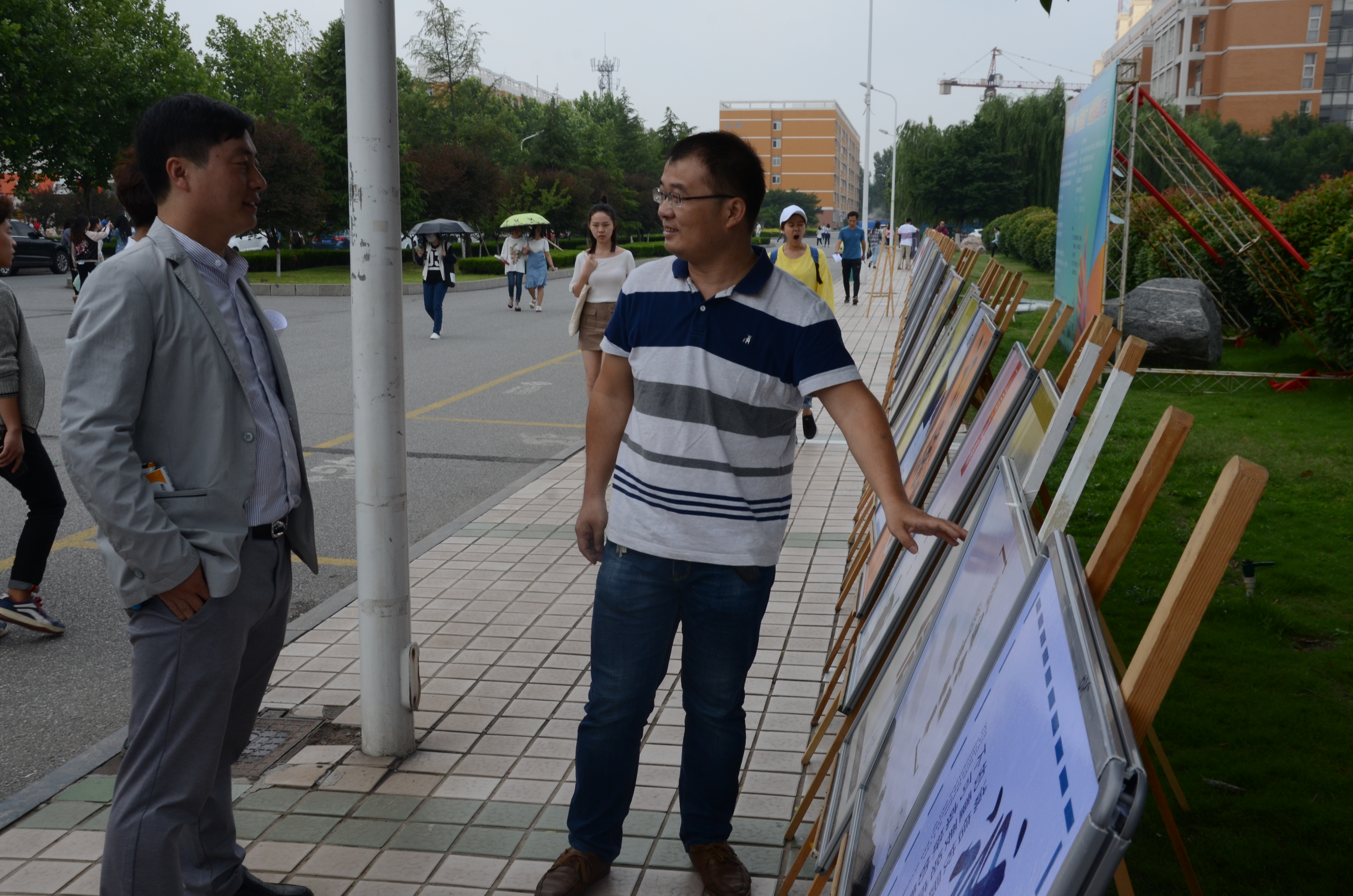 6月6日,由校学生资助管理中心主办,艺术设计学院承办的“诚信校园行”安阳工学院公益海报设计大赛入围作品展览在至善湖畔举办。校学生工作处副处长邓辉,资助管理中心主任郭海东,艺术设计学院党总支书记牛晓雷、党总支副书记赵红杰、校党委宣传部文明办主任张林等一行数人前来参观指导。