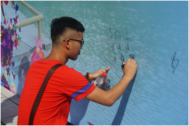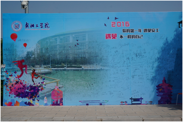 迎新现场井然有序,气氛热烈。志愿者们帮助新生搬运行李,挥汗如雨,奔走于各学院迎新点、学生公寓之间;全体迎新工作人员积极主动、耐心细致地为新生和家长答疑,办理报到手续。今年的新生也豪不怯场,纷纷在签字墙上龙飞凤舞的写下了自己的心愿和大名;在留影墙前和自己的父母一起留下了在安阳工学院的第一张照片,留下了幸福的瞬间。