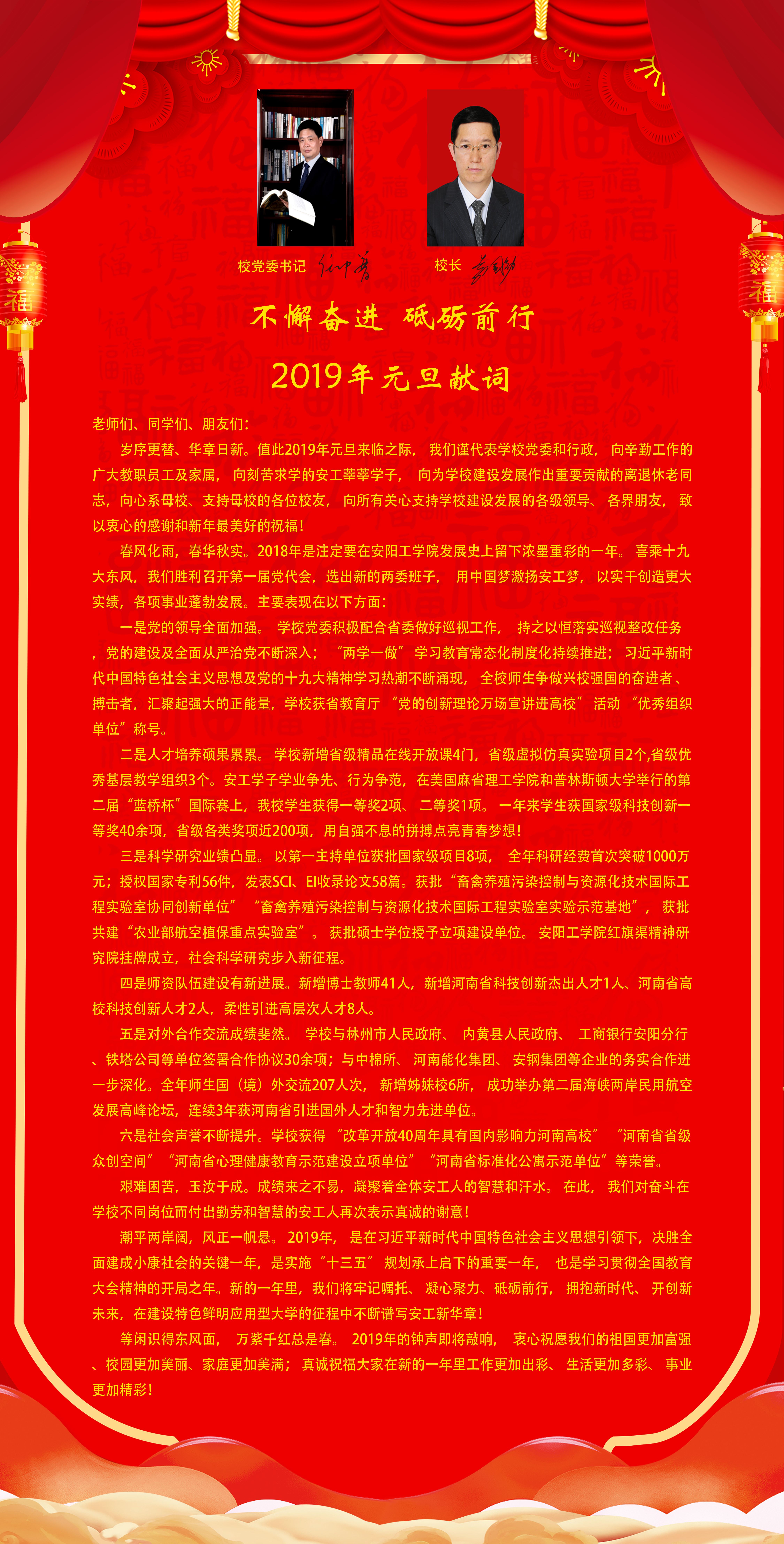 不懈奋进 砥砺前行——2019年元旦献词
