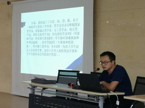 学生资助中心主任对我省和我校学生资助体系进行了简要介绍,并对我校上年资助工作进行了总结梳理,查找不足,建立台账,明确整改措施。重点针对《教育部等六部门关于做好家庭经济困难学生认定工作的指导意见》和《河南省家庭经济困难学生认定工作实施办法》进行了解读与交流,强调学生家庭经济困难认定申请的政策变化和建立家庭经济困难学生认定量化指标体系的重要性,详细介绍了2019年贷款新政策。