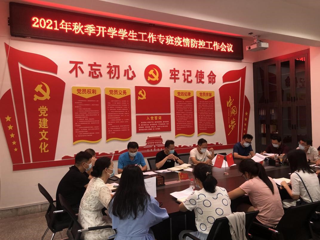 会上,王振宇首先传达了8月19日上午全省教育系统疫情防控暨开学准备工作视频会议精神以及学校领导对我校秋季开学疫情防控工作的总体安排,并带领大家共同学习了《全省教育系统落实新冠肺炎疫情防控工作主体责任和监督责任方案》《全省疫情防控指挥部教育系统工作专班执纪组工作细则》《2021年秋季开学前后疫情防控监督执纪工作方案》等文件。学生工作处副处长戴晓明带领大家对《河南省各级各类学校2021年秋季学期返校开学条件清单》进行了梳理。