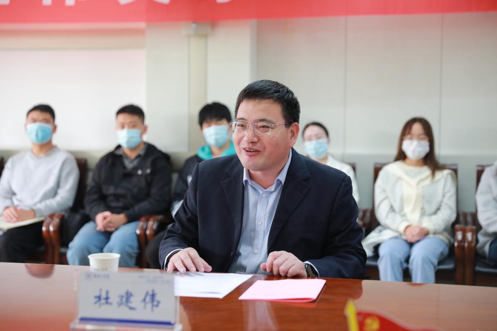 杜建伟结合自己创业经历引导同学们树立正确的就业创业观;他表示捐赠的目的是激励学生的学习热情,帮助学校为国家培养更多优秀人才,并通过这种捐赠形式逐步发展成为一个平台,让更多的企业家加入到这个平台,为培养更多优秀的学生提供支持;他简要介绍了企业的设备资源,并希望和学校开展更为广泛深入的合作。