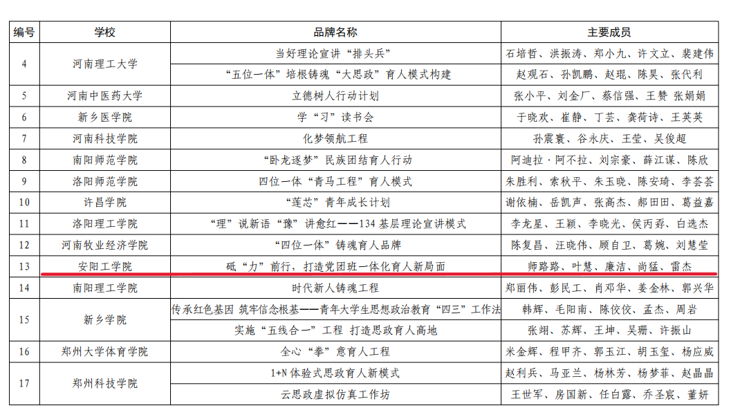 近日,河南省教育厅公布了2023年度全省高校思想政治工作奖评选结果,由学生工作部推荐选送的、飞行学院师路路主持申报的《砥“力”前行,打造党团班一体化育人新局面》荣获2023年度全省高校思想政治工作优秀品牌。