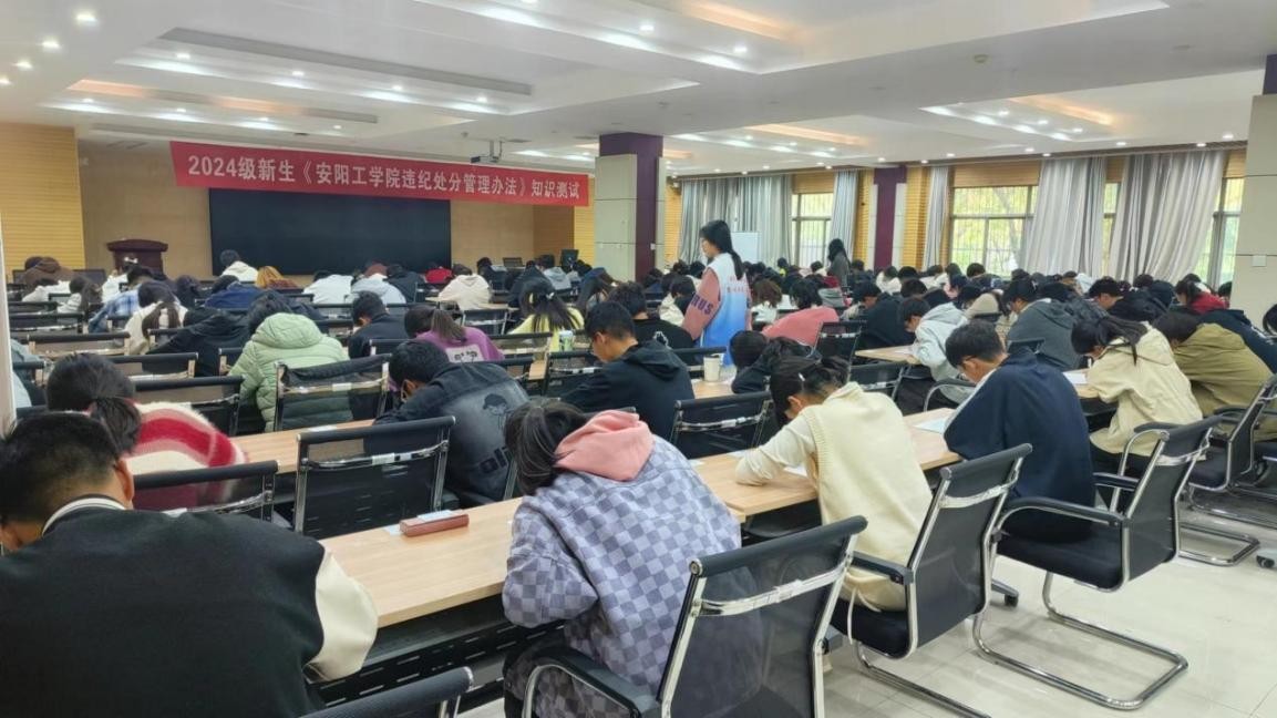 新生入学教育期间,学生工作处联合各学院组织全体新生学习《安阳工学院学生手册》相关规定,新生们学习学校各项规章制度。为巩固学生学习成果,2024年10月25日,学生工作处组织开展2024级新生《安阳工学院违纪处分管理办法》闭卷抽查测试,进一步强化了学生纪律认知。