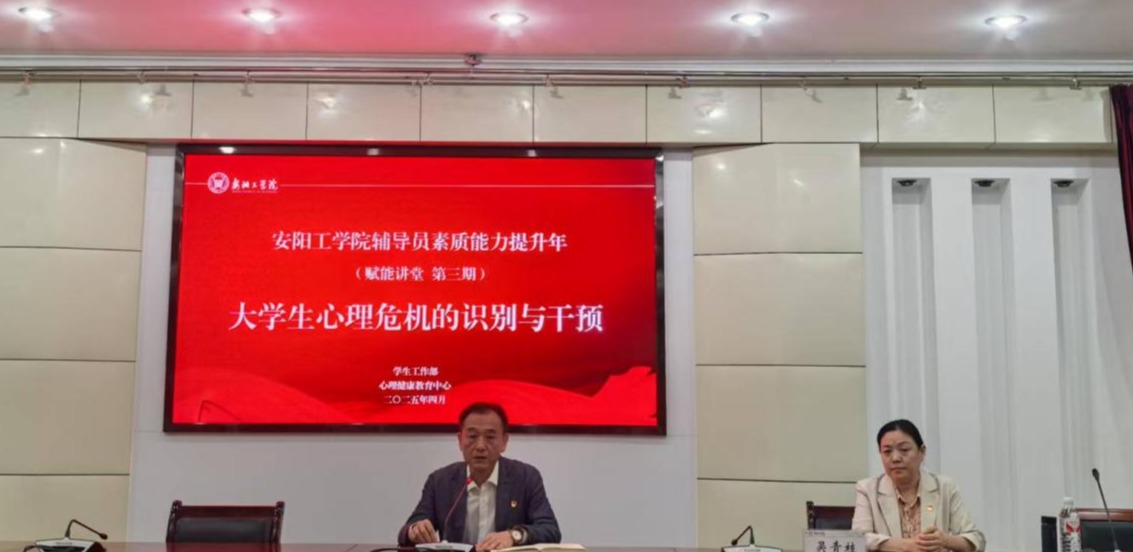4月18日,第三期辅导员赋能讲堂在行政楼四楼会议室举行。学校心理健康教育中心主任吴青枝教授担任主讲,各学院党委副书记、全校辅导员参加,学生工作部部长王振宇主持。
