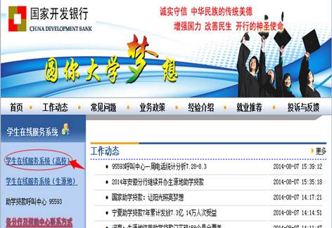 2.进入国家开发银行助学贷款信息网,点击:“学生在线服务系统(高校)”