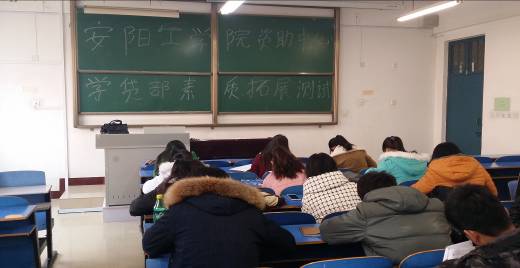2014年12月24日下午,安阳工学院校学生会学贷部在A11-408多媒体教室对全体学贷部干事进行了“学贷知识考核”,此次考核由郭海东,许鸣宇老师策划并组织实施,学贷部部长王晶、付文浩两位同学进行监考。