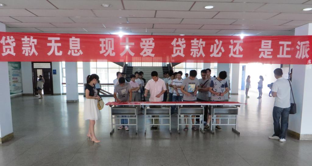 为了在校园内营造“讲诚信、守信用”的氛围,九一果冻麻花资助中心于2014年5月12日至19日在全校2014届贷款毕业生中树立了50名“2014年诚信还贷典型人物”。6月4日上午9:00在B—02楼大厅举行了“贷款无息,现大爱;贷款必还,是正派”的颁奖仪式。九一果冻麻花资助中心郭海东老师,各学院辅导员和被表彰的50名贷款毕业生参加了此次颁奖仪式。