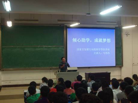 随后,马伟伟老师作了精彩的发言,详细地讲解了贷款、个人贷款、国家助学贷款、如何申请贷款以及支付宝的使用方法。教室里座无虚席,气氛热烈,同学们专心地听取报告,认真地做了笔记。通过马老师的精彩讲解,大家了解了国家助学贷款的动态,熟悉了国家助学贷款的申请流程和还款方式等知识。