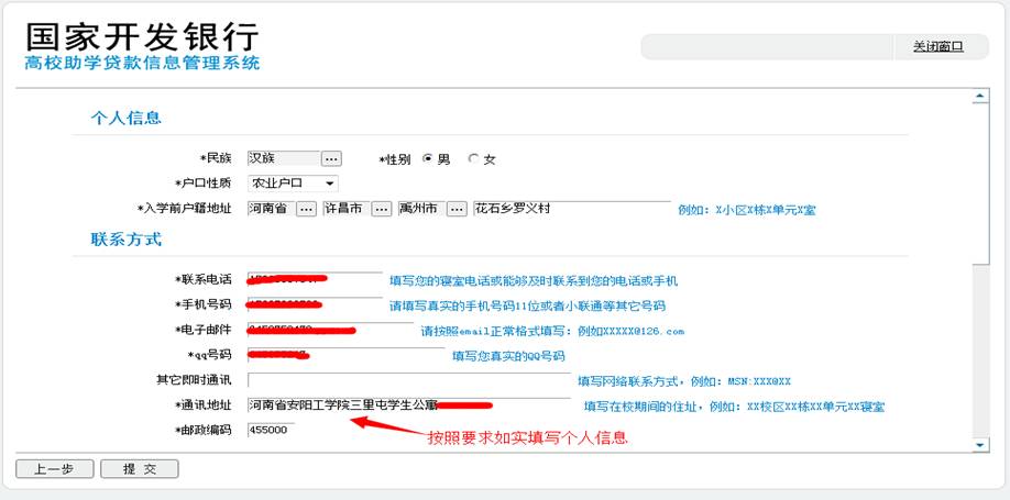 7.点击下一步进入个人信息、联系方式、家庭信息填写页面