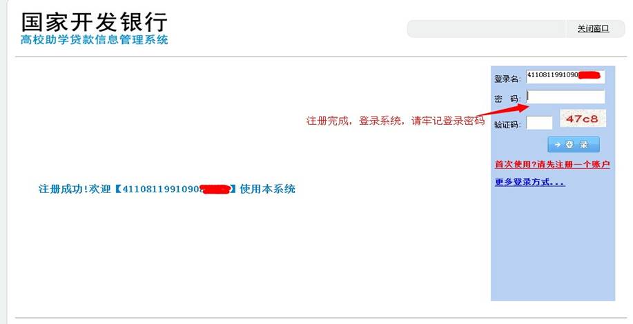 4.进入系统登陆或注册页面:首次贷款的学生请先注册,已注册过的可直接登陆