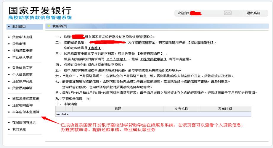9.登陆成功进入国家开发银行高校助学贷款