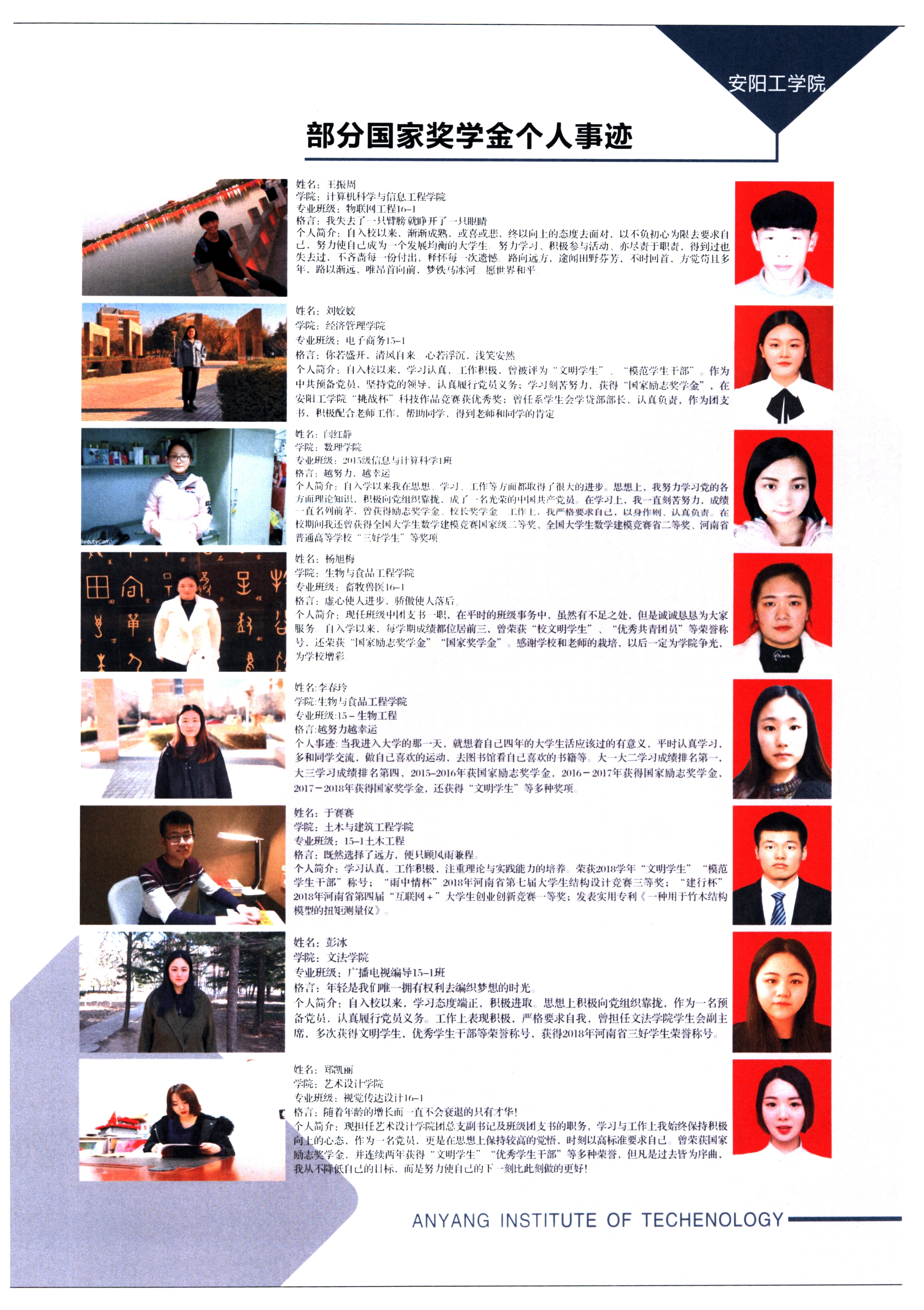 2017年部分国家奖学金个人事迹